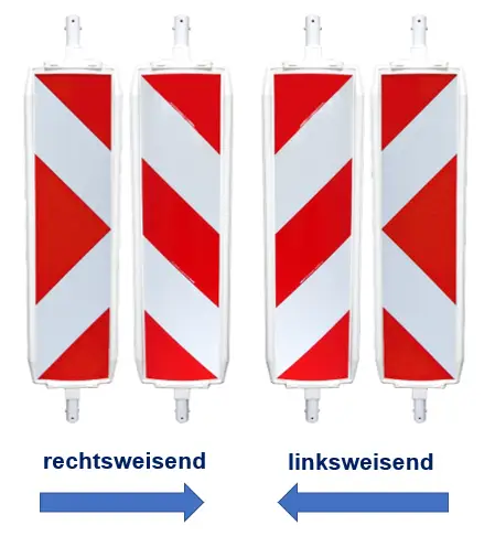 Unsere Tipps und Tricks: Hier sehen wir vier Baken mit unterschiedlichen Folientypen. Was bewirken diese? die Folientypen tragen dazu bei, den Verkehr optimal zu Leiten und sorgen dafür dem Fahrer eine gute Übersicht zu gewährleisten. Hat man als Fahrer keine gute Übersicht, vorallem Nachts, kann es schnell zu unglücklichen Situationen führen